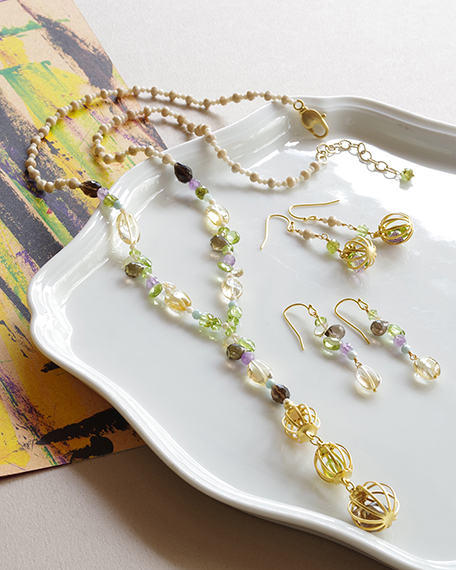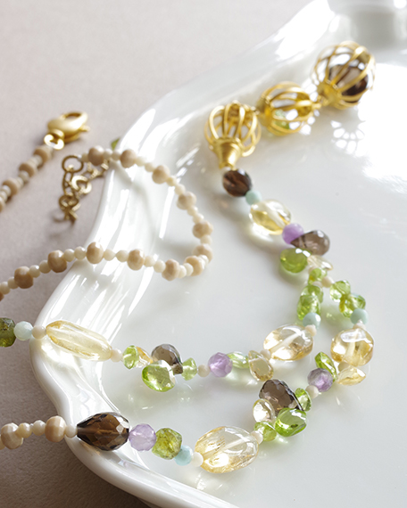 柔らかな色の天然石で作るネックレス。春の花々にも栄えるトーンでデザインしました。